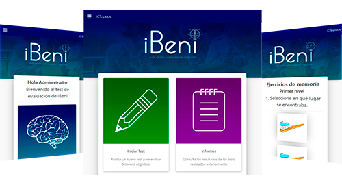 La plataforma web iBeni, es enfocada a los adultos mayores para evaluar deterioro cognitivo. La plataforma cuenta con un test de inicio, que es la que evalua el deterioro cognitivo, una vez terminado el test te muestra si tienes o no el deterioro y el nivel de deterioro cognitivo que tienes. Ademas, la plataforma cuenta con mas de 70 ejercicios para poder estimular la mente, los ejercicios son de memoria, cálculo, comprensión, atención.